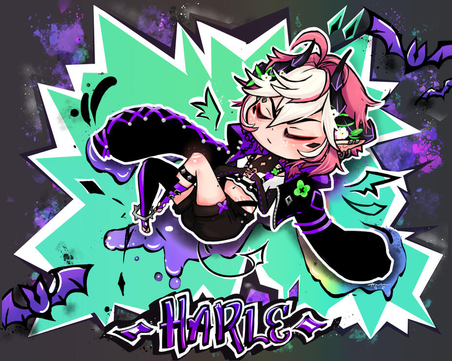 // Plagued by an uncanny amount of bad luck, this unlucky luck demon has seen better days. Fired from Hell and subsequently demoted, Harle is now just a broke peasant trying to get by. Currently stuck in the humans' "retail hell", the motivation to craft and be free has thus been renewed.